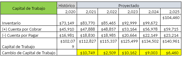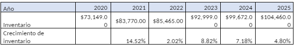 En este punto, muchas empresas eligen un criterio de evaluación de proyecto y compran lo que parece mejor. Es muy tentador elegir la opción de sistema selectivo simple del proveedor C. Sin embargo, es incorrecto juzgar un proyecto por un solo indicador. Recuerde que el valor de su empresa está directamente relacionado al flujo de dinero que produce. Este flujo se compone de varios elementos. Uno muy importante es el capital de trabajo y el inventario compone parte de este. Según la proyección de crecimiento usted cuenta con estos datos: